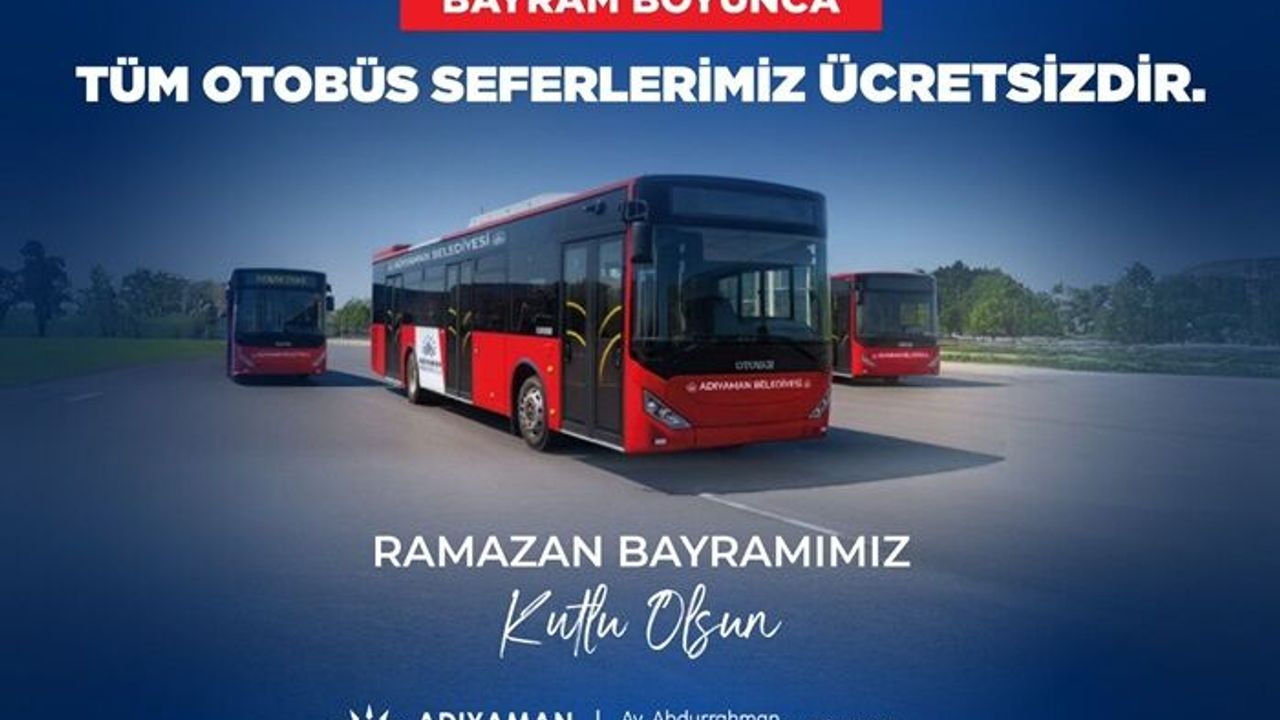 Adıyaman belediye başkanlığı, Ramazan bayramı müddetince 3 gün belediye otobüslerinin vatandaşa ücretsiz hizmet vereceğini duyurdu.